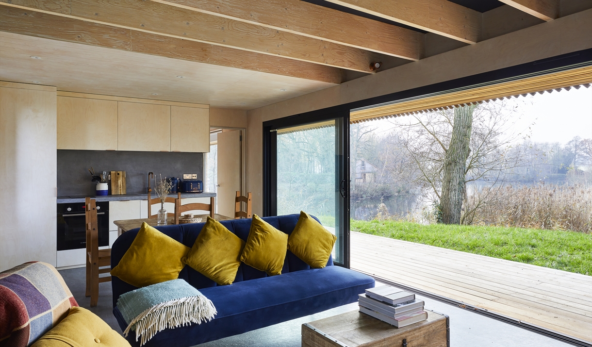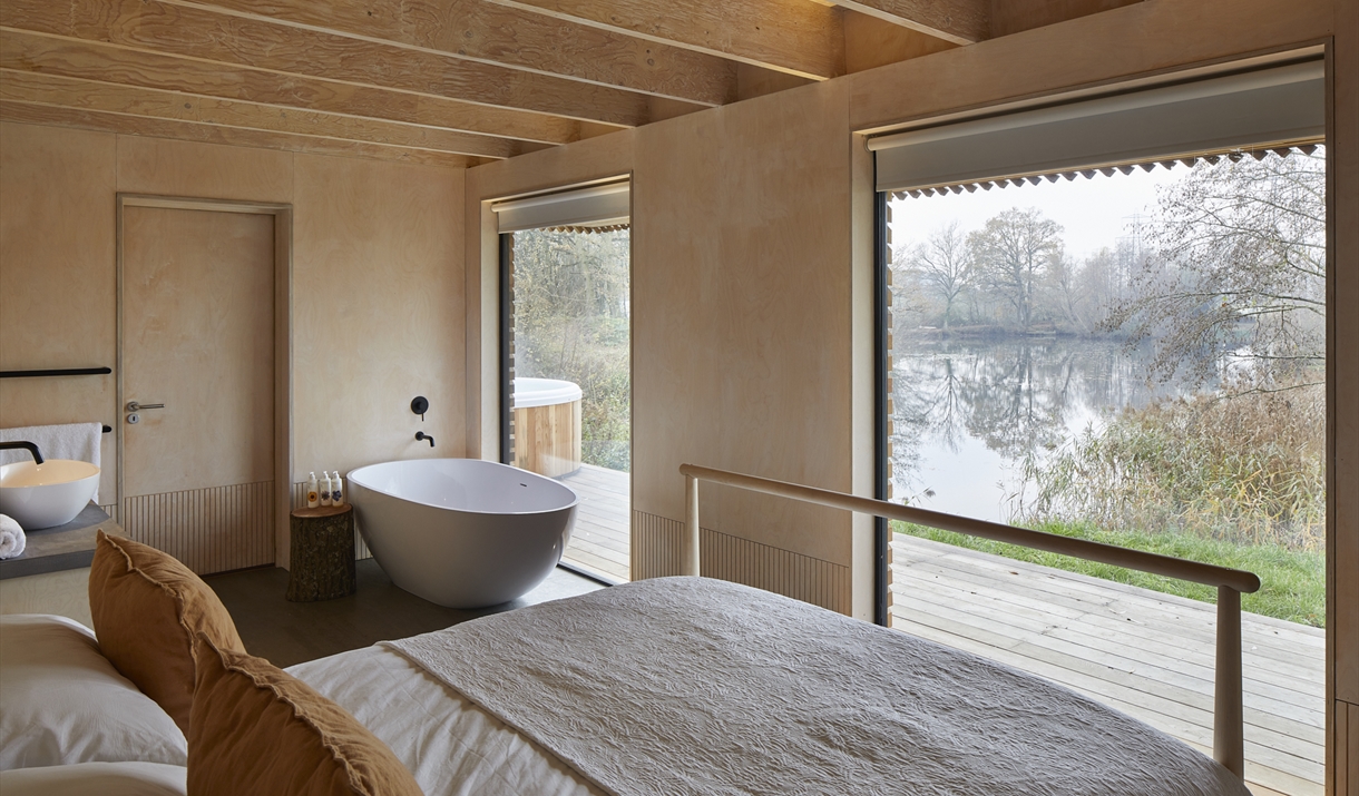 Kingfishers Nest is the second of our cabins, built in 2020 and part funded by the European Agricultural Fund for Rural Development. The cabin is approached down a country track and offers epic accommodation right on the edge of one of our hidden lakes in the Colne Valley, surrounded by woodland offering wonderful views in a peaceful location.