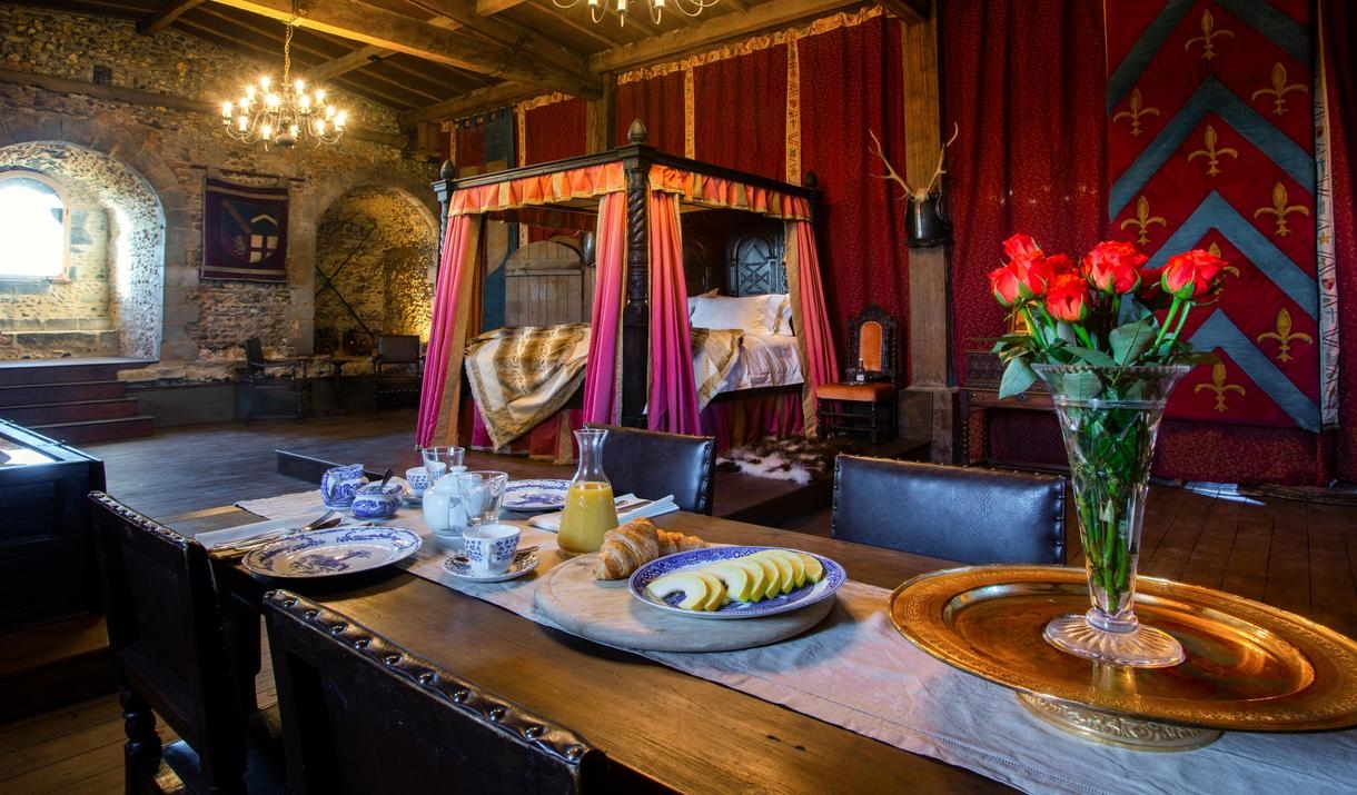 Staying in The Royal Chamber is a treasured experience for those who love the history and atmosphere of Hedingham Castle. Your experience is made even more magical with special touches waiting for you on arrival: enjoy a chilled bottle of Champagne and luxury chocolates, and a delicious Continental breakfast for the following morning, included with every stay.