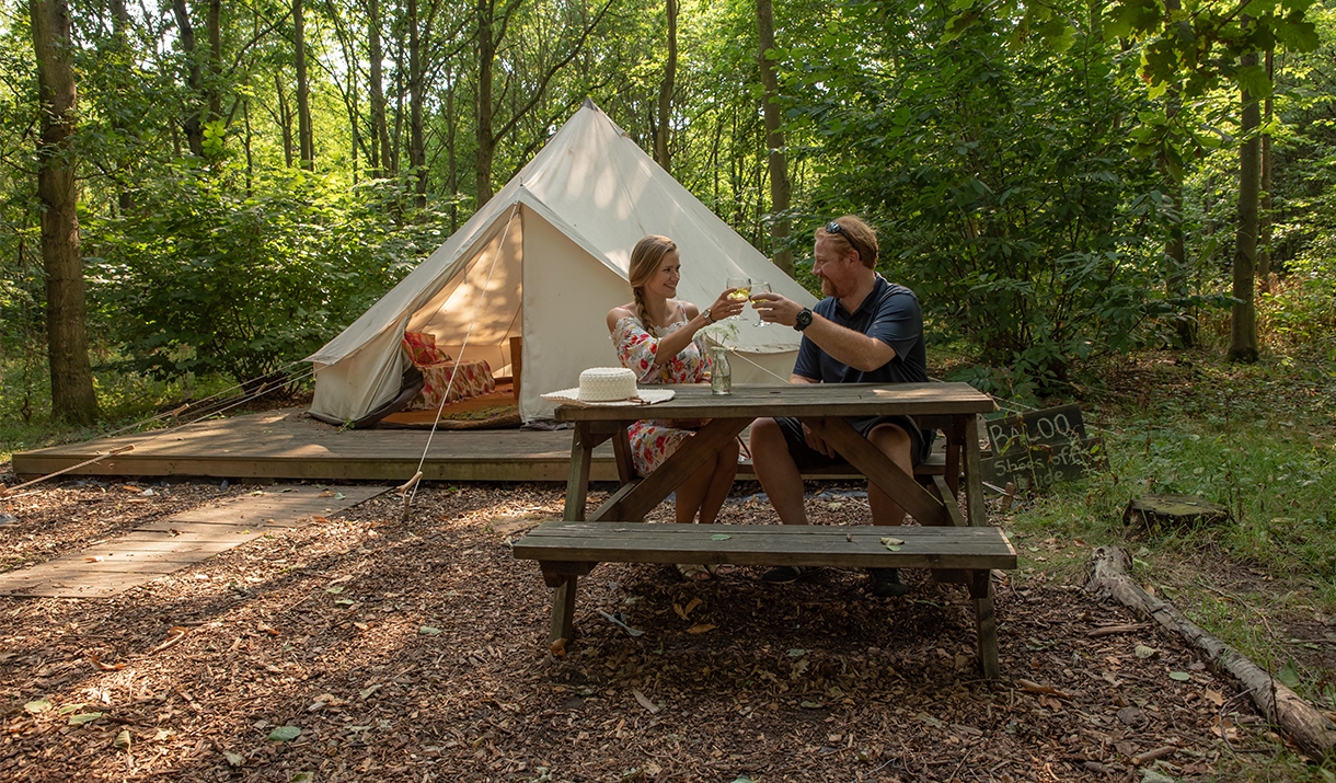 There are 10 different unique dwellings - including bell tents, yurts, a Shepherds Hut and Grain Silo.