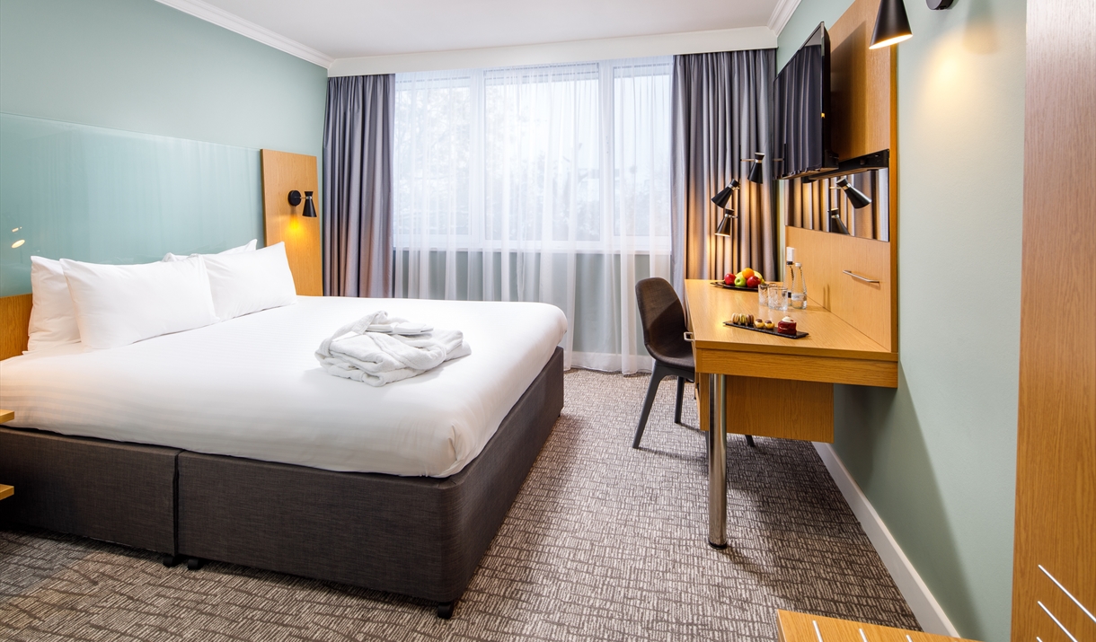 Stay in a Classic Room with a double or twin bed, en suite bathroom, hair dryer, HD TV, free high speed WiFi, tea and coffee making facilities, individual climate control, bathrobes and slippers upon request. Hotel offers accessible and family rooms. Children up to the age of 12 stay and eat free. We are pet friendly. We offer 100 parking spaces for our guests at £6 for overnight guests. Free parking for event attendees.