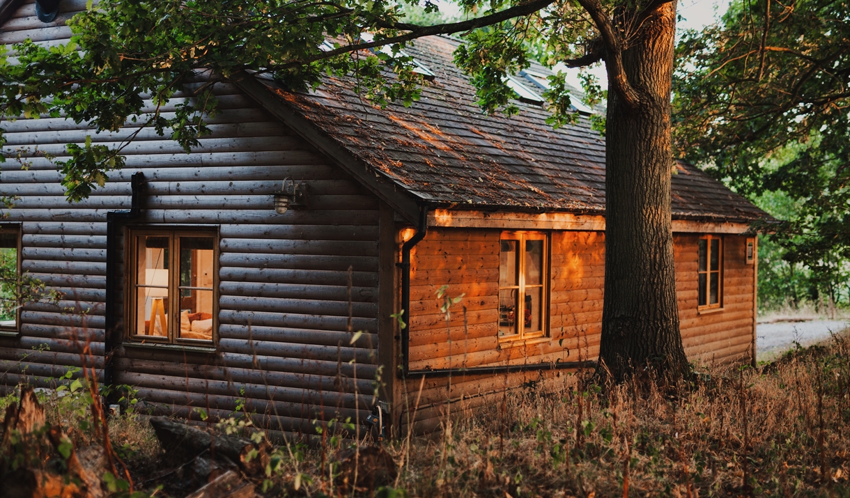 The log cabin completed in 2016 is approached down a country track and offers epic accommodation right on the edge of one of our hidden lakes in the Colne Valley, surrounded by woodland offering wonderful views in a peaceful location.