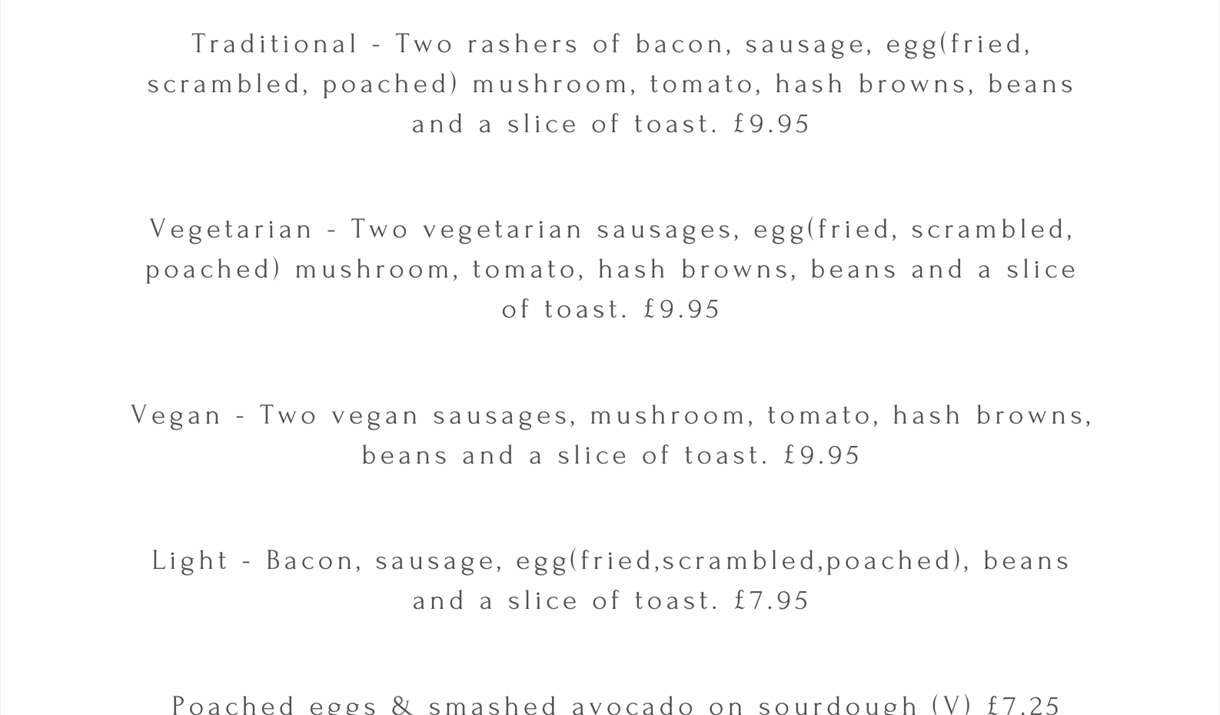Special menus are available throughout the year including Mother's day, Father's day and Easter.
