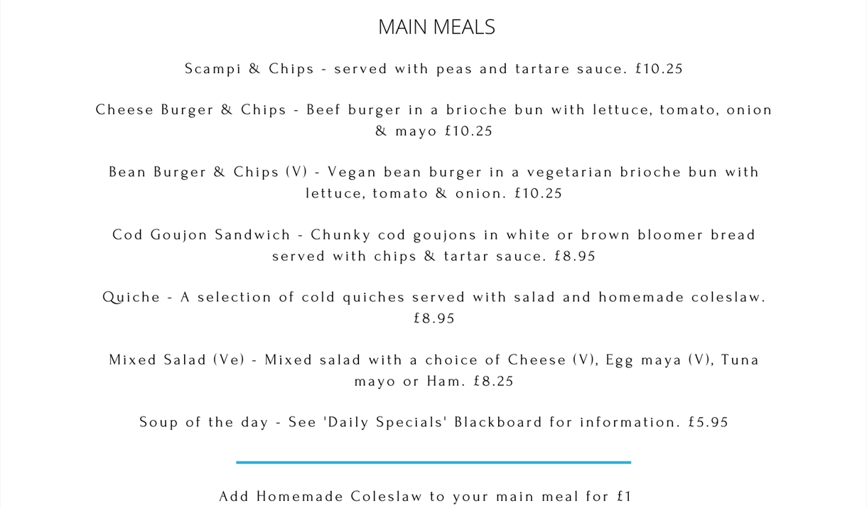 Cafe on the Water is a stylish 48 seater restaurant which is open 50 weeks of the year. There is a further seating area outside on the decking with spectacular views over the reservoir, which is open from April to November each year. The cafe serves a selection of main meals, sandwiches, salads and desserts, along with a selection of alcoholic and non alcoholic beverages to accompany your meal.We also offer a childrens corner for children to relax and play while the parents enjoy a hot drink or bite to eat.