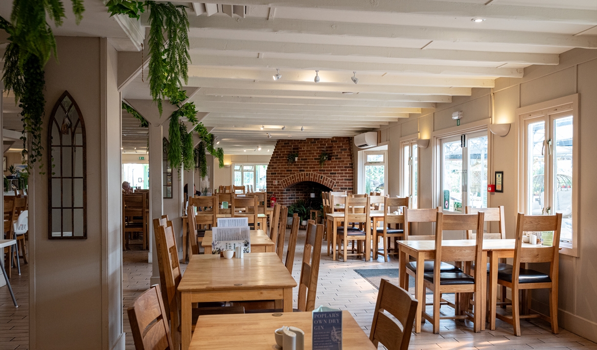 Our Poplar restaurant seats up to 227 (136 inside, 26 outside and 65 in our conservatory). The conservatory overlooks the play area, gardens and Poplar Miniature Railway, making it a beautiful spot to enjoy a meal or a quick cup of coffee all year round.