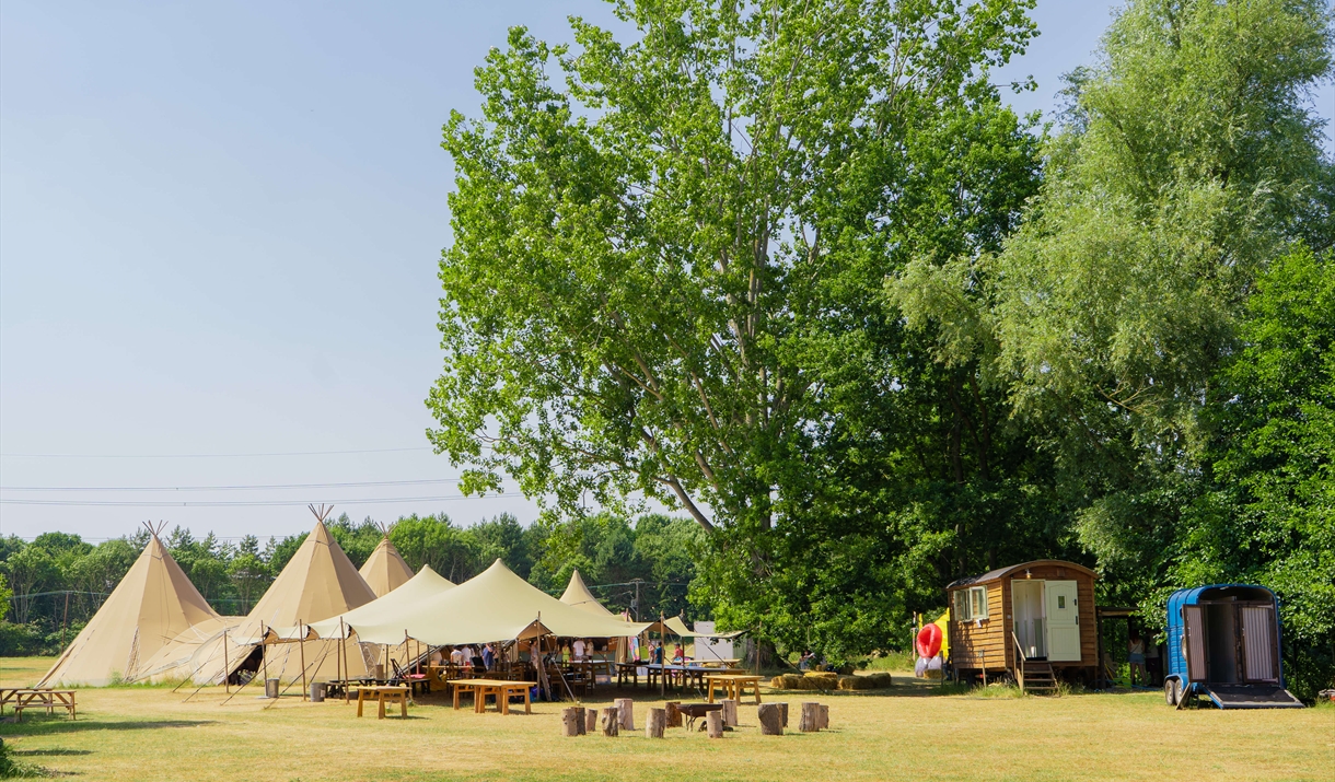 By car: The post code brings you to a van garage called Colne Commercials but you will see the entrance to our meadows next to this garage called "Chalkney Water Meadows". Once you are through the gates, you will come down a track and find sign posts which will direct you to our beautiful tipis!