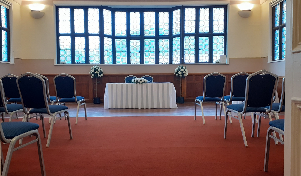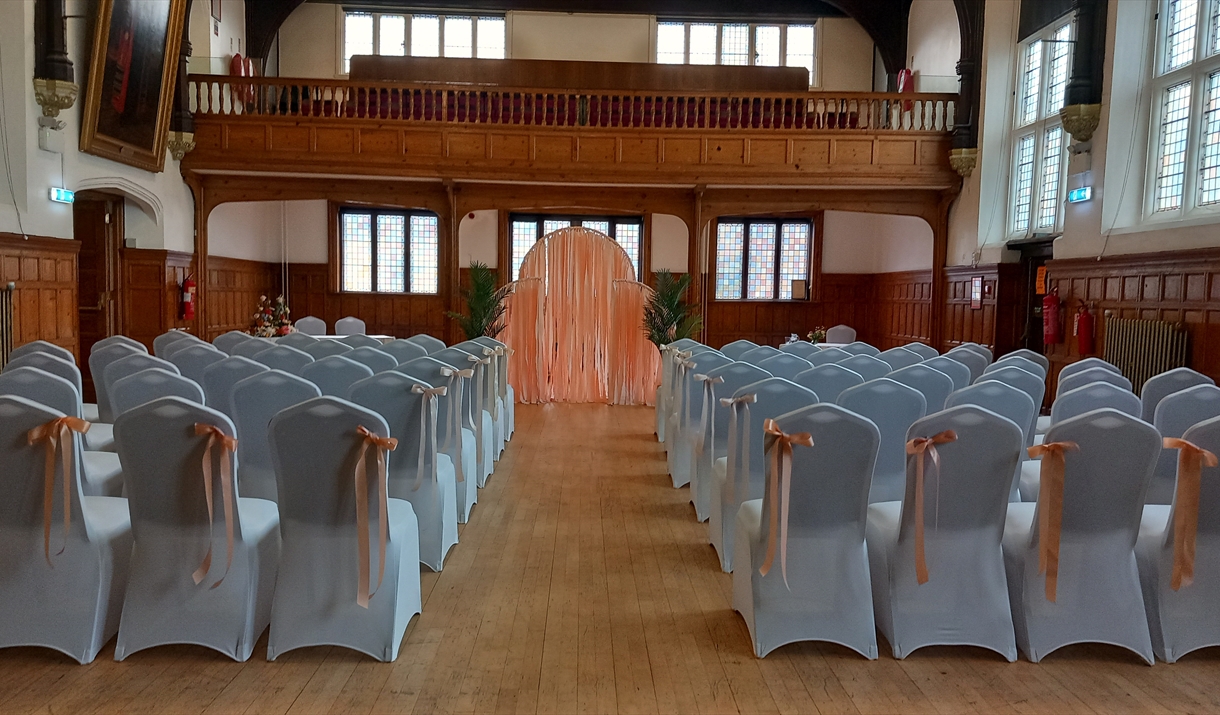 Saffron Walden Town Hall was built in 1761, it is a central location within the town standing in the centre of the Market Sqaure, its beautiful unchanged period features give the hall a majestic feel. The Town Hall has three rooms licenced for weddings and civil ceremonies, with seating capacites for 2 guests up to 120 guests. Receptions can also be booked at the Town Hall with caterers, bands and DJ's being brought in. The Town Hall is a blank canvas for couples to paint thier special day on, a beautiful venue with gorgeous light streaming in through the stained glass windows. With prices starting from £445 for the Community Venue Ceremony.