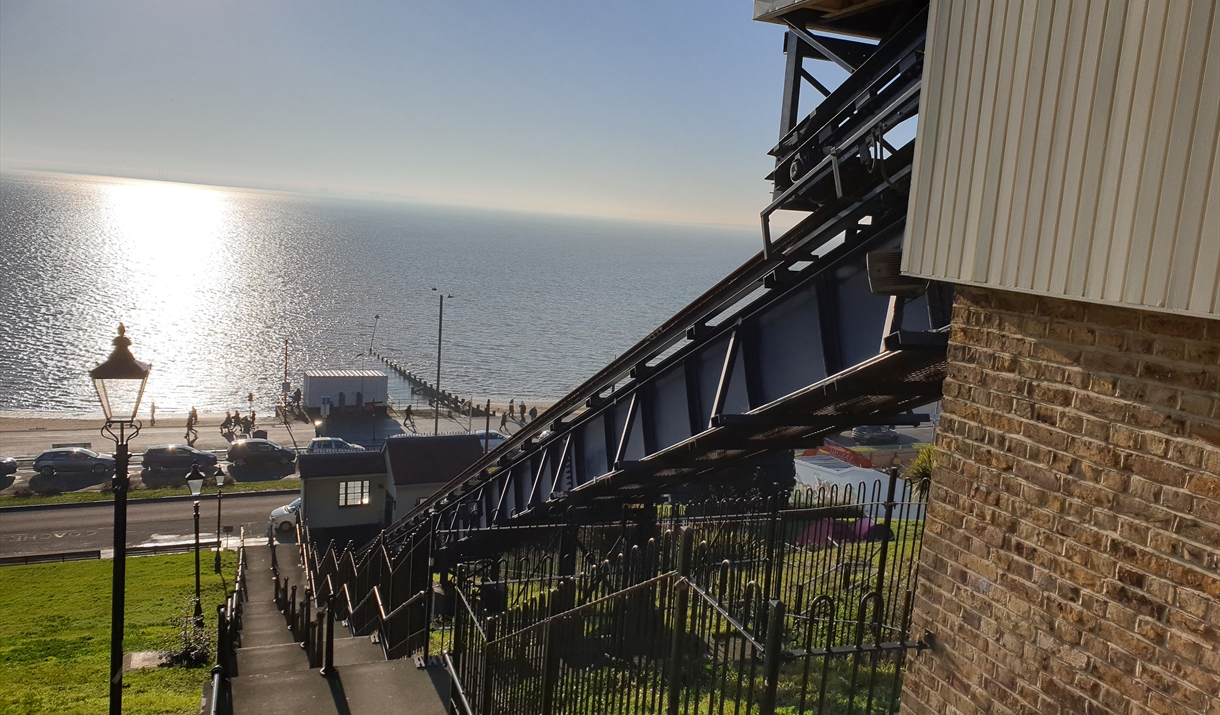 Southend's Cliff Lift was constructed in 1912. The lift operated for the first time on Bank Holiday Monday, in August of that year. The lift is currentlyopen 10 - 3pm each day if a volunteer operator is available.