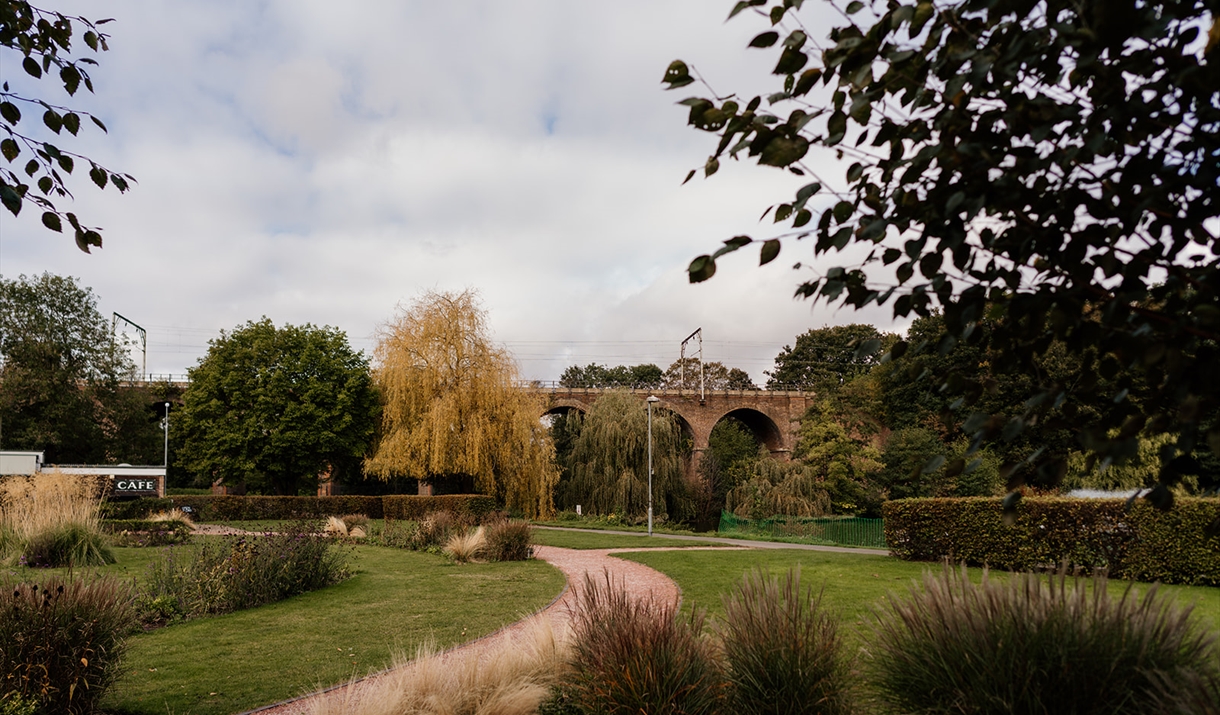 Visitors can enjoy beautiful flowerbeds, riverside walks and cycle paths, a model railway, children’s play areas, a lake, skateboard ramp, tennis courts, a multi-use games area and table tennis. Many outdoor events are held here during the year and visitors can also take in the views of the iconic Victorian railway viaduct whilst walking around the lake, stopping for refreshments from the Park cafe.