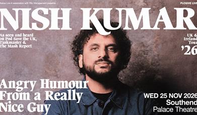 Nish Kumar: Angry Humour From A Really Nice GuyThe UK's leading political comic Nish Kumar – co-host of hugely popular podcast Pod Save the UK, former host of axed BBC show The Mash Report, and one of Taskmaster's greatest losers – is back on tour with a formidable batch of passionate, progressive stand-up for the ages.- more info