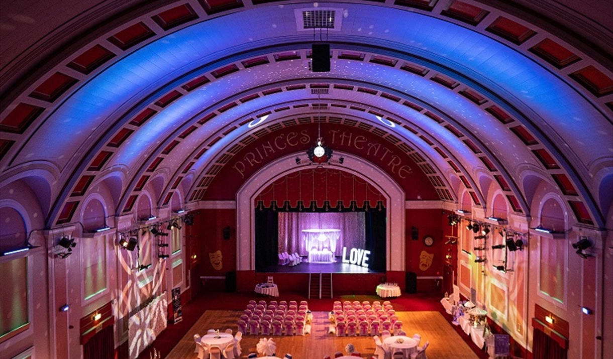 The Princes Theatre, situated inside the listed Clacton Town Hall, in the popular and picturesque resort of Clacton on Sea presents a wide range of live entertainment on stage throughout the year.With a mobilised tiered seating system by audience systems it allows the 820 seat 1930's theatre turn into a multi purpose venue, with a seating capacity of 300 guests for an array of events, including; functions, exhibitions, award evenings, product launches, training courses, charity events, birthday parties and wedding receptions. The theatre team will be able to assist with and give a full range of support services for all events, including your very own wedding co-ordinator for wedding receptions!