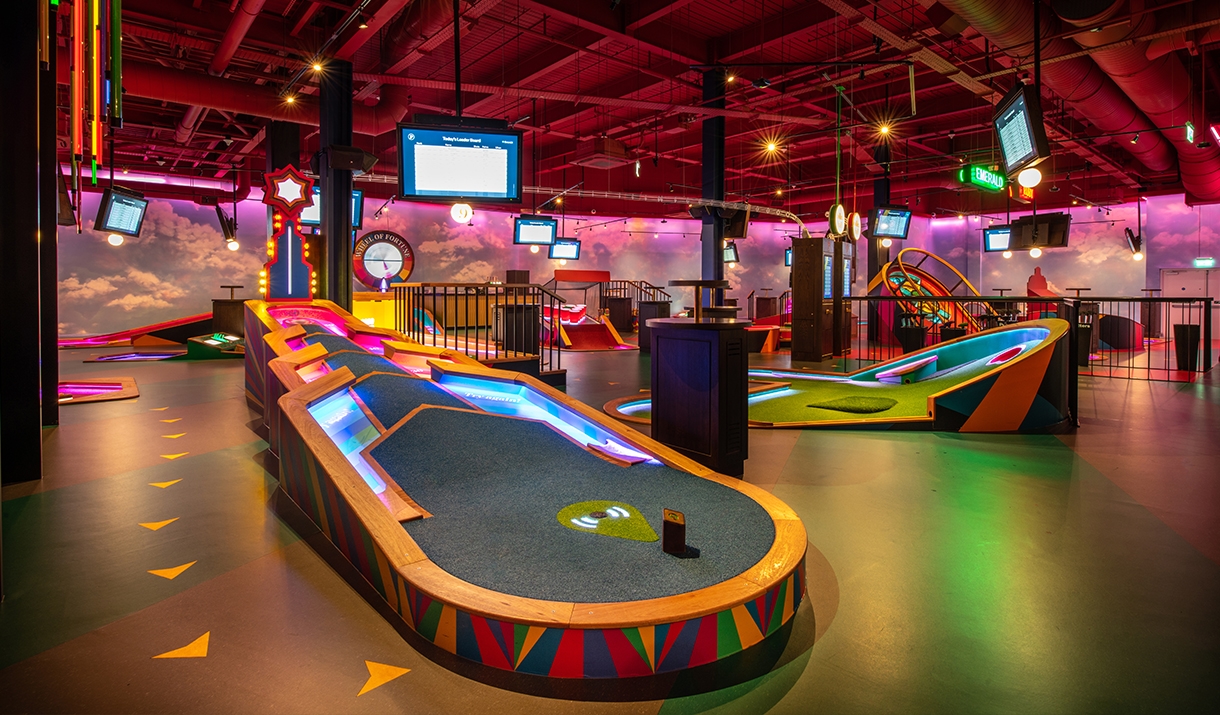 Puttshack is an upscale, high-tech mini golf experience that brings everyone into play. Mini golf that’s been reimagined, Puttshack leans on its ground-breaking technology to elevate the game, meaning there’s no pens or paper to keep score and no way of cheating either. We’re also all about serving up a globally inspired food menu and offer a full bar service in a seriously cool environment - you won't want to leave!