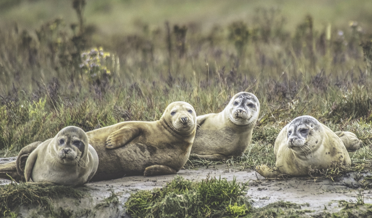 Walton backwaters, a healthy breeding population which has increased from only 5 in 1986. The colony of both harbour seals (Phoca vitulina) and grey seals (Halichoerus grypus) which are an unusual russet colour due to the iron oxide-rich mud which they haul out onto. The seals love to rest on the mudbanks like the backwaters, because these waters are permanently free of ice.