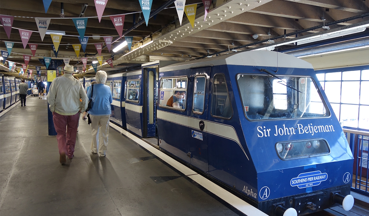 If you don't fancy walking the length of the pier take a ride on the 3 ft (914 mm) narrow gauge railway that runs for 1.25 miles (2.01 km) along the length of Southend Pier. Pier trains leave the shore end of the Pier on the hour and half hour from opening until 1 hour before closing. The trains leave the Pier Head at a quarter to and a quarter past the hour until 15mins before closing. This is a half hourly service.