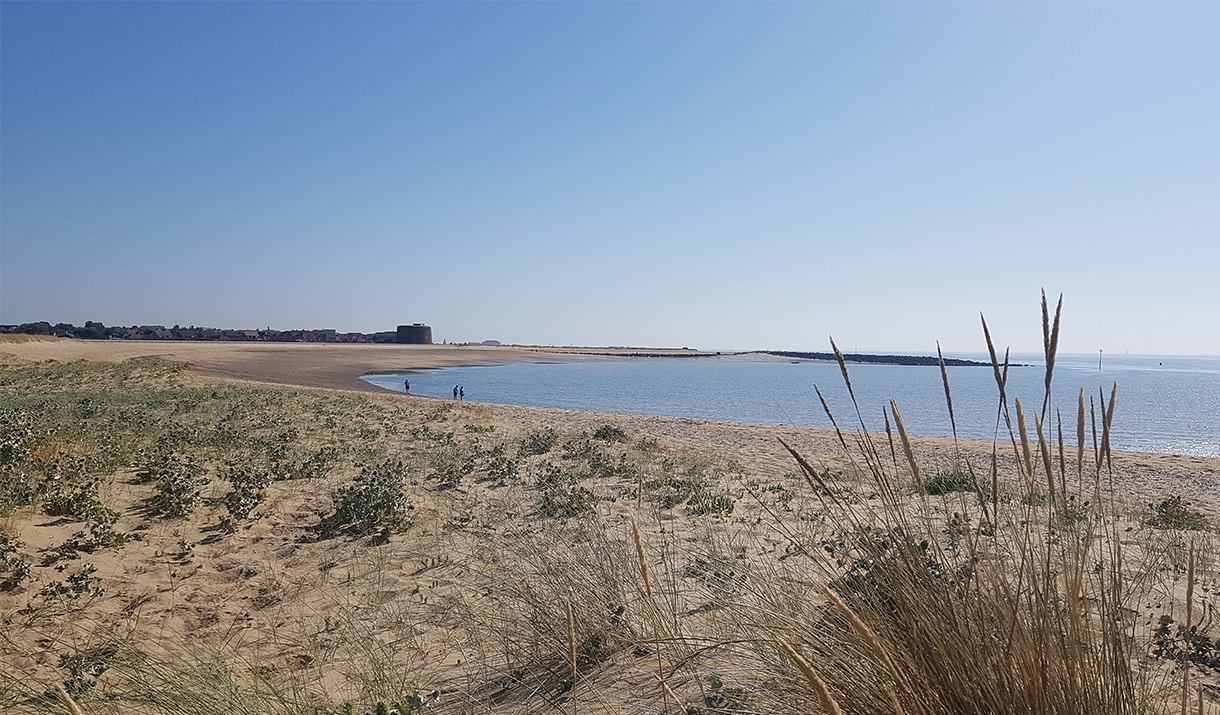 Jaywick is a small settlement, tucked in between Clacton-on-Sea and the marshes and dunes of Colne Point. Built in the 1930’s as a holiday village of chalets for London’s East Enders it now has a year round population of people, as well as many visitors in caravans, enjoying the golden beaches of Jaywick Sands. It’s a great place to be on a sunny summer day when people stroll along the miles of sea walls, sit on the dunes or swim by the seaweed covered, boulder breakwaters.