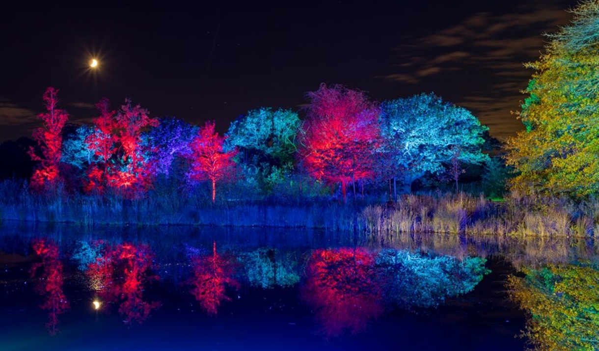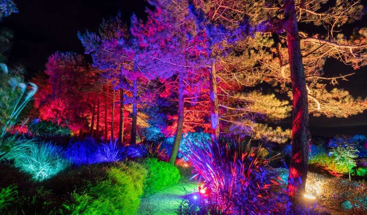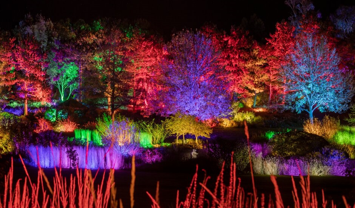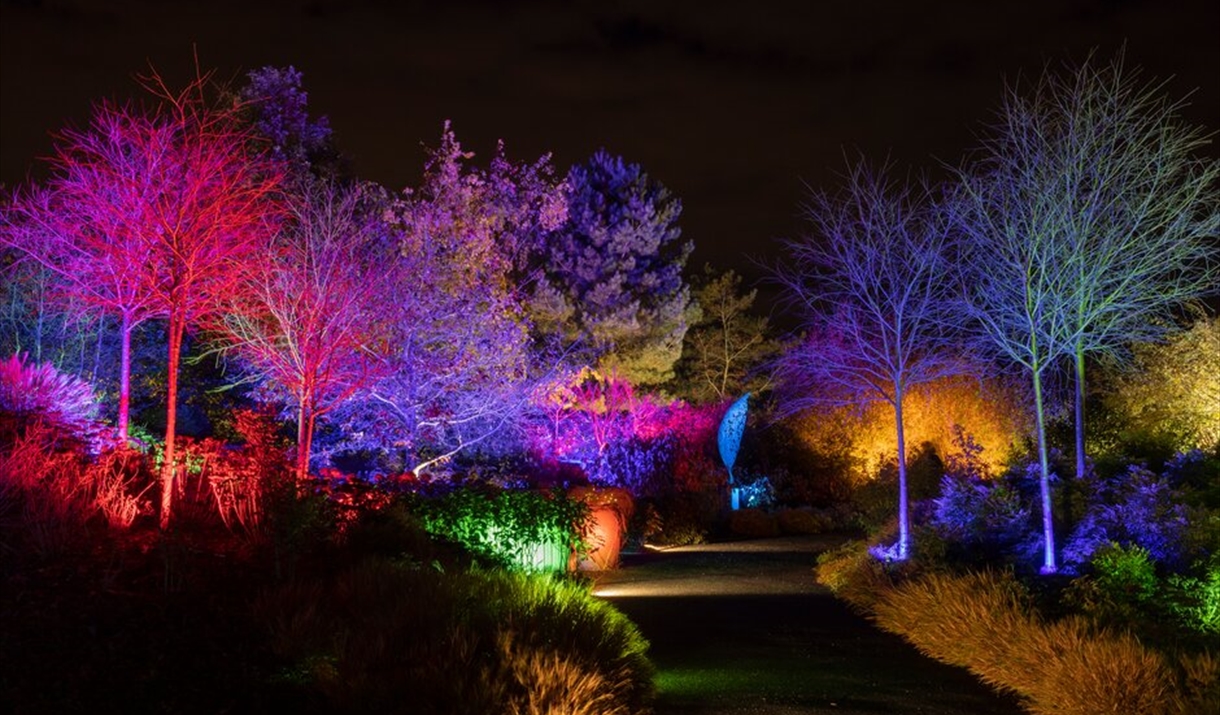 Follow the winding route through a selection of your favourite garden areas and discover shrubs awash with colourful lights and trees lighting up the night sky. In the Winter Garden, be dazzled by our iconic willow structures and leaf sculptures immersed in festive colour.